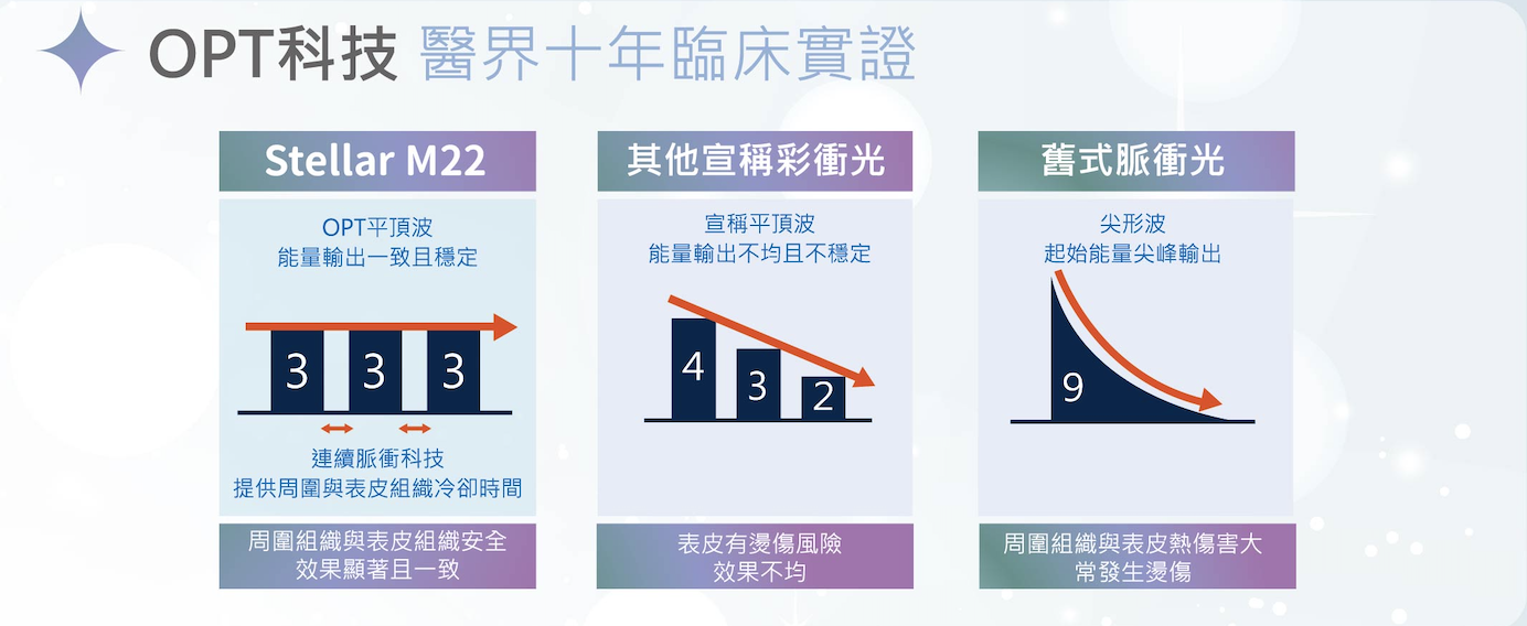 Smoothglo具有Stellar星動光的治療特色,搭配OPT方形波,穩定且連續性的能量採分段輸出,漸層溫和的熱效應可以保護周圍組織不受熱傷害,所以治療過程安全舒適,幾乎無痛感,修復期也極短。